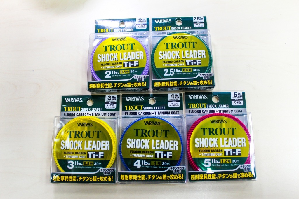 3) Varivas Trout Shock Leader Ti-F - новая серия флюорокарбоновых материалов для ловли форели собрала под одной крышей самые передовые технологии обработки лесок, и без зазрения совести может именоваться самой абразивоустойчивой леской в форелевой программе. Однако, как и другие лески серии она обладает достаточной мягкостью и эластичностью.