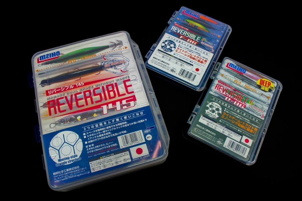 1- Meiho Reversible - серия двухсторонних рыболовных коробок от японской компании Meiho. Особенно их оценят любители спиннинга и отвесного блеснения. Коробки выполнены из прочного пластика, с максимальным полезным объемом и прорезями для пропускания влаги и циркуляции воздуха. Специальное расположение отсеков треугольной формы коробок серии Reversible позволяет наиболее эффективно использовать их внутреннее пространство, исключая при этом контакты приманок и крючков между собой, тем самым сохраняя лакокрасочное покрытие приманок при транспортировке. Коробки серии Reversible изготовлены из полипропилена, прозрачные крышки крепятся к основанию двумя петлями, которые не выступают за габариты коробки и защищены от случайных повреждений.